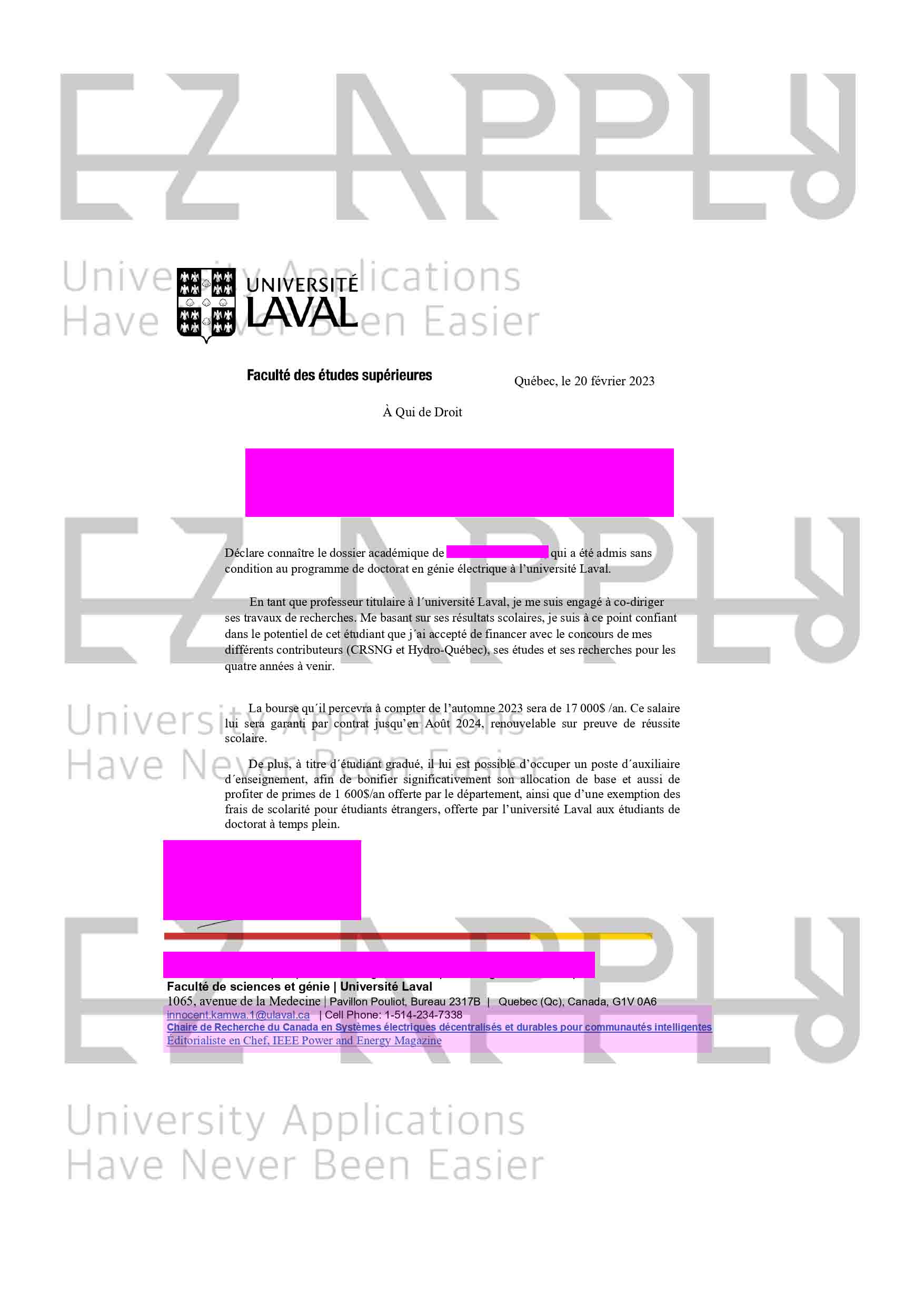 پذیرش فول فاند اخذ شده توسط تیم ایزی اپلای در مقطع «دکتری» در رشتهی «مهندسی برق» از «Laval University» در کانادا برای پاییز 2023