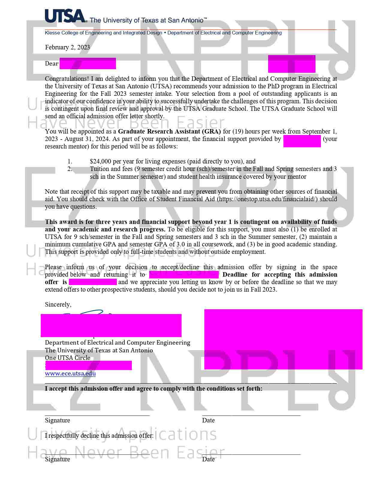 پذیرش فول فاند اخذ شده توسط تیم ایزی اپلای در مقطع «دکتری» در رشته «Electrical Engineering» از «University of Texas at San Antonio» در آمریکا برای پاییز 2023